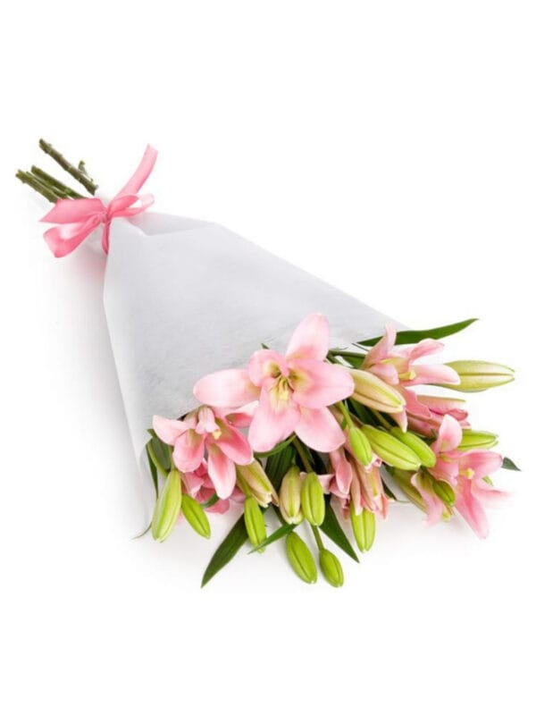 Delicate, feminine, and full of charm — our Blush Pink Lily Bouquet is a stunning gift wrapped with love. Featuring fresh pink oriental lilies, both in bud and bloom, this bouquet is perfect for birthdays, anniversaries, new baby celebrations, or just to brighten someone’s day. Presented in elegant wrap and finished with a satin bow, it’s a thoughtful choice that blends beauty with fragrance.