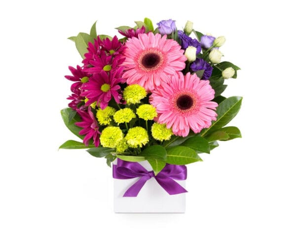 Soft, graceful, and full of warmth, Blushing Violet is a stunning pink and purple box flower arrangement perfect for any occasion.