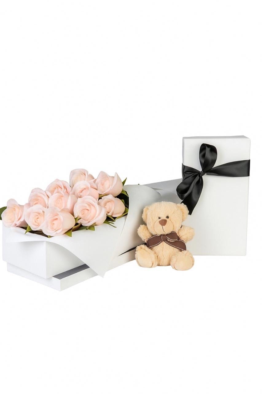 Send love in the softest way possible – with a fresh pink rose and an adorable teddy bear. Whether it’s a romantic gesture or a sweet surprise for someone special, Pink Hug says it all with one bloom and one cuddle.