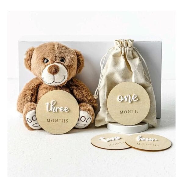 Be the first to review “Wooden Baby Milestone Discs with Plush Teddy Bear Gift Set”